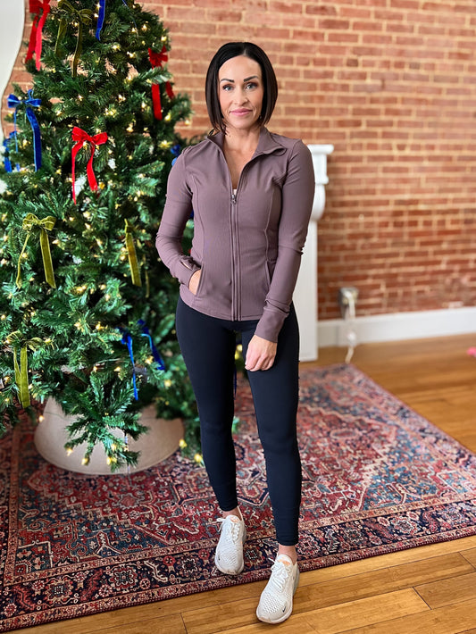 Peppercorn Ribbed Performance Zip Jacket